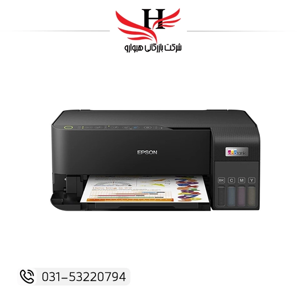 پرینتر جوهر افشان چندکاره رنگی اپسون EcoTank L3550 با قابلیت چاپ، اسکن و کپی، مجهز به مخزن جوهر اقتصادی و اتصال WiFi و USB، مناسب مصارف خانگی و اداری با سایز...